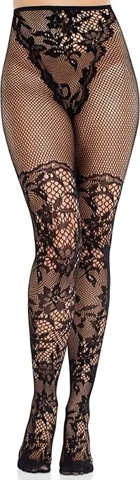 Elevate your legwear with the Dahlia Lace Stockings from Leg Avenue. Featuring an intricate floral lace and fishnet design, these stockings add a sophisticated touch to any outfit.