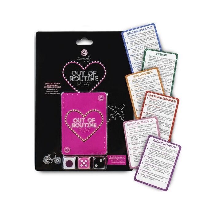 Give an exciting twist to your intimate life with the thrilling game "Out of routine play" from Secret Play! Ignite passion and break away from monotony with your partner. Are you ready to discover new experiences and enjoy exciting challenges? Roll the dice and immerse yourself in a world of fun and passion!