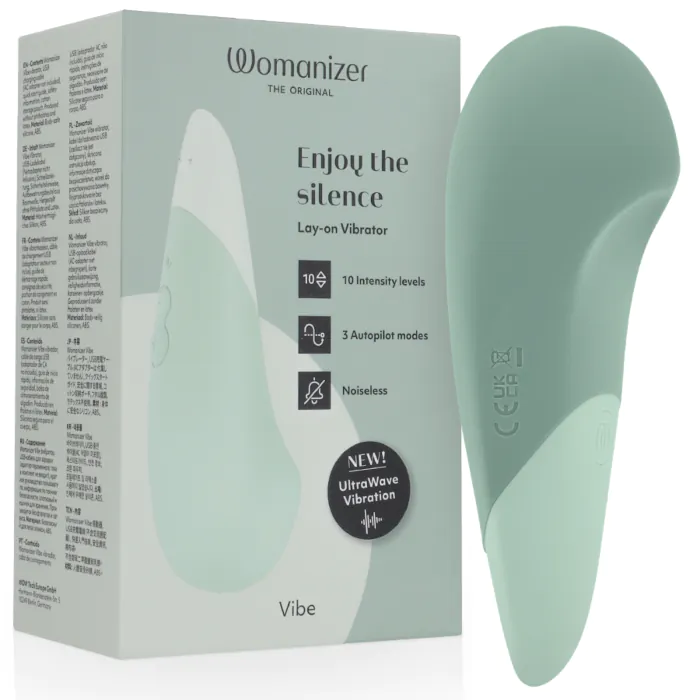 Think of this as the in‑store chat: the Womanizer Vibe is a lay‑on clitoral vibrator that favours deep, low‑frequency rumbles rather than sharp, buzzy ticks. The key draw is the UltraWave system — a linear motor producing broad, enveloping vibrations across 10 harmonic resonances — so it feels full and layered on the clitoris rather than a single surface buzz. It's deliberately quiet, rechargeable and rated IPX7, so you can use it in the shower or bath without fuss. At nearly half a kilo it has a reassuring weight, and the soft, body‑safe silicone surface feels smooth against the skin.