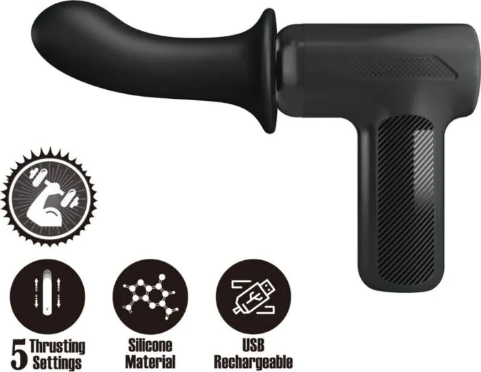 Unleash powerful stimulation with the Pretty Love DJ Doctor massage gun, featuring a robust motor and 5 thrilling thrusting settings. Crafted from silicone ABS, this device not only delivers intense sensations but also ensures a comfortable grip during use.
